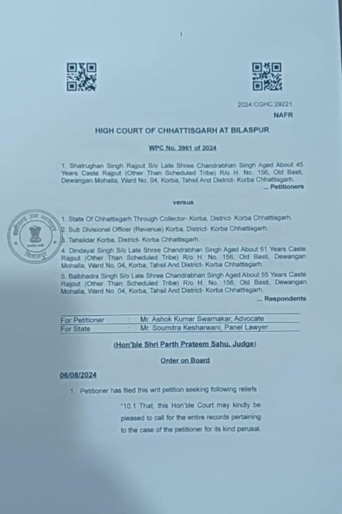 राजपूत का कहना है कि बंदोबस्त सर्वे के दौरान उनकी अनुपस्थिति का लाभ उठाकर इस भूमि को शासकीय भूमि बताकर गलत तरीके से सरकारी खाते में दर्ज कर लिया गया। इस त्रुटि को सुधारने के लिए उन्होंने छत्तीसगढ़ भू-राजस्व संहिता की धारा 89 के तहत प्रकरण दायर किया है, जो वर्तमान में माननीय अनुविभागीय अधिकारी (एसडीएम) कोरबा के समक्ष लंबित है।