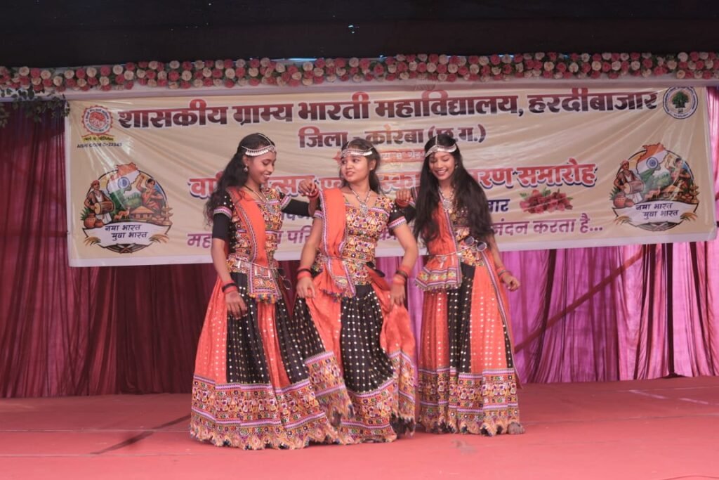 सेंट्रल छत्तीसगढ़/विनोद उपाध्याय/हरदी बाजार… शासकीय ग्राम्य भारती महाविद्यालय हरदी बाजार में वार्षिक स्नेह सम्मेलन एवं पुरस्कार वितरण कार्यक्रम का आयोजन सांस्कृतिक प्रभारी अशोक मिश्रा के नेतृत्व में किया गया। कार्यक्रम के मुख्य अतिथि प्रेमचंद पटेल विधायक विधानसभा क्षेत्र कटघोरा, विशिष्ट अतिथि रोहित सिंह एसडीएम पाली हरदी बाजार, विमल खांडेकर नायब तहसीलदार एवं अध्यक्षता डॉ एम एम वैष्णव प्राचार्य शासकीय ग्राम्य भारती महाविद्यालय हरदी बाजार ने किया। कार्यक्रम का शुभारंभ मां सरस्वती की पूजा अर्चना दीप प्रज्वलित कर अतिथियों द्वारा किया गया। सरस्वती वंदना व राजकीय गीत महाविद्यालय के छात्र लुकेश साहू एवं साक्षी राठौर द्वारा प्रस्तुत किया गया। महाविद्यालय के छात्र -छात्राओं द्वारा अब तक का ऐतिहासिक एवं मनमोहक कार्यक्रम प्रस्तुत किया गया। कार्यक्रम में राजस्थानी स्वागत नृत्य – घनी कम्मा प्रियंका, मयूरी ,दिव्यांशी, इंदु, आंचल, छत्तीसगढ़ रीमिक्स श्यामलता ,सावित्री ,तमन्ना, एकल नृत्य मेरे ढोलना सुन अवंतिका, एनसीसी कैडेट के छात्र – छात्राओं का समूह नाटक एवं नृत्य, गुजराती नृत्य इंदु , दीपांजलि ,आंचल, एकल नृत्य शरारत आंचल कुर्रे, हरियाणवी समूह नृत्य प्रियंका ,मयूरी, दिव्यांशी, इंदु एकल गीत साहिल ,समूह नृत्य कर्मा अभिषेक ,अनीश, गौतम ,शिव, दुर्गेश ,साहिल ,देसू ,मनीष, प्रिया, बदल ,रश्मि, किरण, रेणु, प्रियंका, एकल नृत्य कृष्णा लक्ष्मी एवं यूकेश, समूह नृत्य फ्लेक्स बाय अभिषेक, अनीश, गौतम, शिव ,दुर्गेश ,अशफाक, युगल नृत्य मया होगे साक्षी राठौर एवं आंचल कुर्रे छत्तीसगढ़ी मिक्स राधिका, चौहान श्याम लता, सावित्री, तमन्ना , समूह नृत्य संबलपुरी आरती, अर्चना, भगवती ,तेजू एन एस एस ,के छात्र- छात्राओं द्वारा प्रस्तुत झांकी , दक्षिण भारतीय समूह नृत्य तमन्ना, श्याम लता, सावित्री , एकल नृत्य सुनिधि पांडे ,युगल नृत्य चंदा साहू एवं प्रियंका, समूह नृत्य हिंदी मिक्स अनीश एवं साथी एकल नृत्य हिंदी मिक्स रिया यादव समूह नृत्य प्रियंका, संजना ,ज्योति ,दुर्गेश्वरी ,आरती, महिमा ने आकर्षक एवं मनोरम कार्यक्रम की प्रस्तुति दी आज के कार्यक्रम में विशेष रूप से सरपंच लोकेश कंवर, भाजपा जिला मंत्री अजय कुमार दुबे, विधायक प्रतिनिधि नरेश टंडन, जनपद प्रतिनिधि अनिल टंडन,आशीष अग्रवाल, सांसद प्रतिनिधि दिलीप राठौर ,हरदी बाजार थाना प्रभारी निरीक्षक प्रमोद डनसेना व अन्य गणमान्य नागरिक उपस्थित रहे ।कार्यक्रम को सफल बनाने में महाविद्यालय के प्राचार्य डॉ एम एम वैष्णव के मार्गदर्शन सांस्कृतिक प्रभारी अशोक मिश्रा के नेतृत्व में डॉ अनिल पांडे ,डॉ महेश वर्मा, शिव दुबे ,श्रीमती अंजलि, कुलवंत तिर्की , डॉ के के दुबे ,डॉ रानू र
