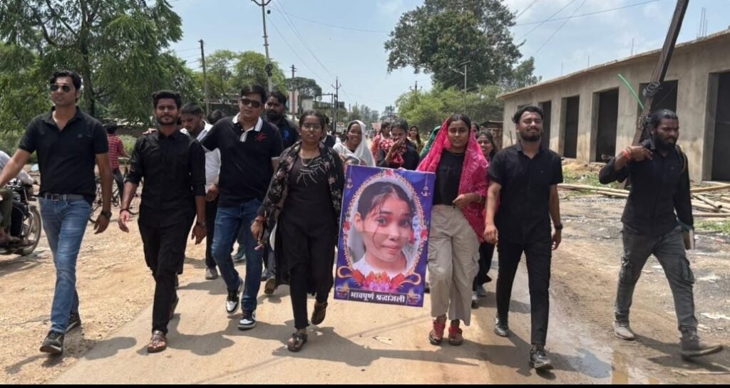 सेंट्रल छत्तीसगढ़ / विनोद उपाध्याय ..(हरदी बाजार ) ग्राम्य भारती महाविद्यालय हरदी बाजार के छात्राओं के द्वारा एक सितंबर को महाविद्यालय बीए सेकंड ईयर के छात्रा ज्योति भारद्वाज की हरदी बाजार मेंन रोड में एक पानी टैंकर ट्रैक्टर की चपेट में आकर मृत्यु हो गई थी जिसकी भावपूर्ण श्रद्धांजलि के लिए छात्र संगठन के द्वारा बुधवार को महाविद्यालय से लेकर कॉलेज चौक बस स्टैंड तक फ्लैक मार्च निकली गई तत्पश्चात सभी छात्राओं के द्वारा बस स्टैंड में दीपक जलाकर बहन ज्योति भारद्वाज को फूल माला अर्पण कर दो मिनट का मौन धारण के साथ भावपूर्ण श्रद्धांजलि दिया गया इस दौरान छात्र संगठनों का मांग है कि हरदी बाजार बस स्टैंड से नवनिर्मित महाविद्यालय तक बस का संचालन किया जाए ताकि फिर इस तरह से घटना घटित ना हो छात्र संगठनों की प्रमुख मांग है कि कॉलेज तक बस की सुविधा, कॉलेज में जो कबाड़ रखा हुआ है उसको वहां से हटाकर कॉलेज परिसर को साफ सफाई किया जाए, मृतक के परिवारों को मूलभूत राशि प्रदान किया जाए, जिसके लिए हरदी बाजार तहसीलदार को ज्ञापन सौंपा है, ज्ञापन में जिक्र कर दिया गया है कि जिला कलेक्टर, एसडीएम, तहसीलदार एवं एसईसीएल प्रबंधन इस मांग को संज्ञान में लिया जाए अब देखना होगा कि छात्र संगठनों की मांग को कब तक पूरा किया जा सकता है ।। छात्र संगठन के छात्रों ने मिलकर ज्योति भारद्वाज की भाव पूर्ण श्रद्धांजलि निकाली गई और छात्रों की हित के लिए मांग करते हुए तहसीलदार को ज्ञापन सौंपा गया,इस दौरान रैली में सैकड़ो की तादात पर महाविद्यालय की छात्रा छात्राएं इस रैली में शामिल हुए ।।