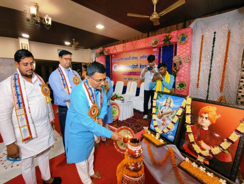 कोरबा : अखिल भारतीय विद्यार्थी परिषद छत्तीसगढ़ प्रदेश की दो दिवसीय प्रदेश कार्यकारिणी बैठक का शुभारंभ कोरबा जिले के कटघोरा में स्थित अग्रसेन भवन में हुआ। यह बैठक 12 एवं 13 अक्टूबर को आयोजित की जा रही है, जिसमें प्रदेश के सभी जिलों से आए जिला संयोजक, विभाग संयोजक एवं प्रदेश कार्यकारिणी सदस्य सहित कुल 110 कार्यकर्ता उपस्थित रहे। यह बैठक आगामी कार्य की कार्ययोजना निर्धारण, प्रदेश के शैक्षणिक-सामाजिक परिदृश्य पर गहन चर्चा के उद्देश्य से आयोजित की गई है।