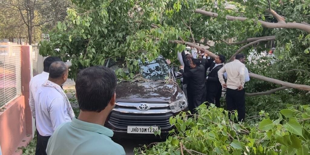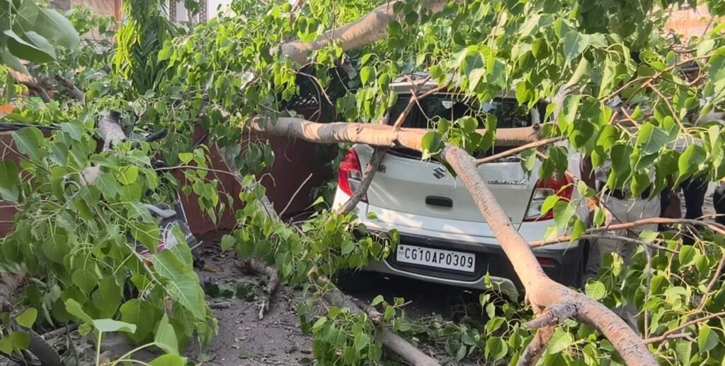 - वाहनों का नुकसान: पेड़ गिरने से दो कार पूरी तरह दब गई हैं, जबकि वहां खड़ी अनेक मोटरसाइकिलें और स्कूटर क्षतिग्रस्त हुए हैं।