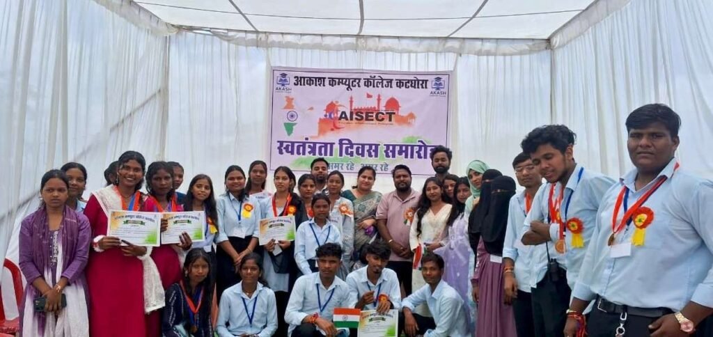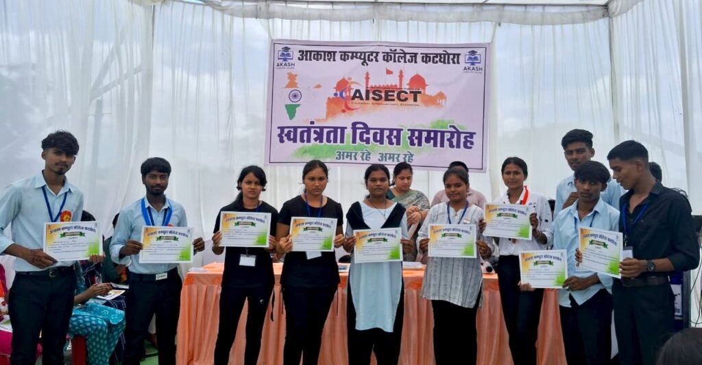 कटघोरा। स्वतंत्रता दिवस के पावन अवसर पर आईसेक्ट आकाश कंप्यूटर कॉलेज कटघोरा में भव्य समारोह का आयोजन किया गया। कार्यक्रम का शुभारंभ ध्वजारोहण से हुआ, जिसके साथ ही पूरा परिसर “भारत माता की जय” और “वंदे मातरम्” के नारों से गूंज उठा।इस अवसर पर मुख्य अतिथि के रूप में श्री संजय शर्मा (जिला मंत्री भाजपा कोरबा), श्री अभिषेक गर्ग (अध्यक्ष भाजपा कटघोरा), श्री सामजीत सिंह (महामंत्री भाजपा कटघोरा) तथा श्री जय गर्ग (महामंत्री भाजयुमो कटघोरा) उपस्थित रहे।मुख्य अतिथियों ने अपने उद्बोधन में कहा –