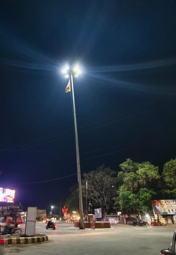 - खतरनाक झुकाव: हाई मास्क लाइट का खंभा एक तरफ झुककर दुर्घटना को दे रहा न्योता।