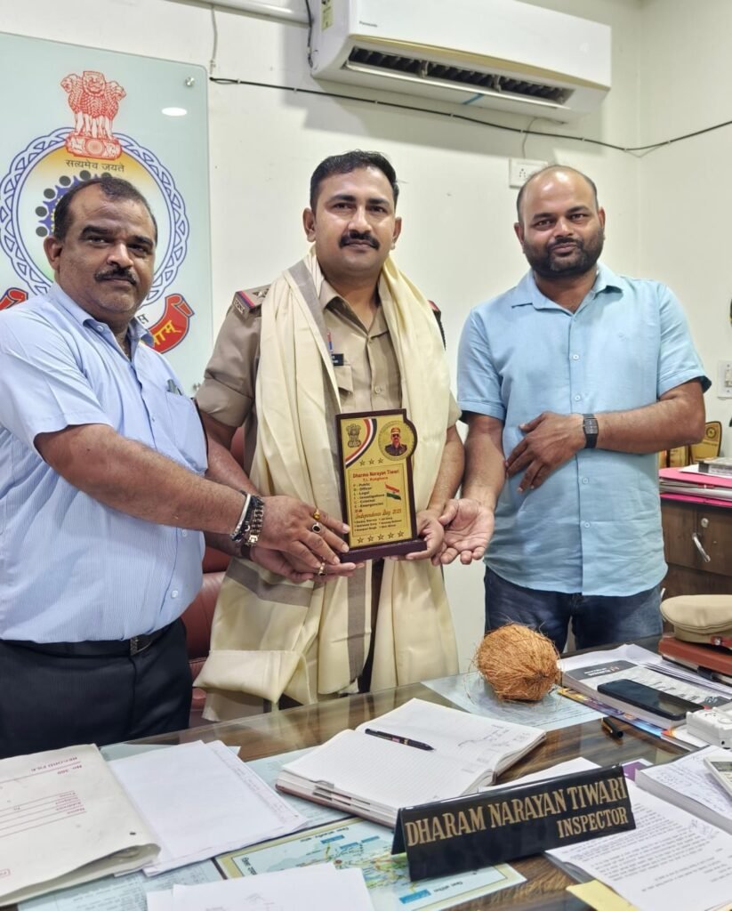 कोरबा ( सेन्ट्रल छत्तीसगढ़) कटघोरा: कटघोरा थाना प्रभारी धर्मनारायण तिवारी को 15 अगस्त को क्षेत्र में कानून-व्यवस्था बनाए रखने और अपराधों पर अंकुश लगाने में सराहनीय भूमिका निभाने के लिए नगरवासियों द्वारा सम्मानित किया गया। उन्हें प्रशस्ति पत्र, शाल, श्रीफल और स्मृति चिन्ह भेंट कर सम्मानित किया गया।