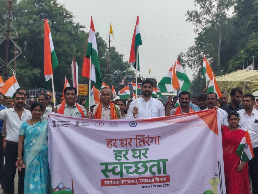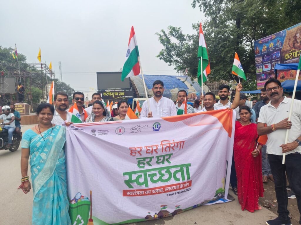 कोरबा ( सेन्ट्रल छत्तीसगढ़ ) :हर घर तिरंगा अभियान के तहत नगर पालिका परिषद कटघोरा को विशाल तिरंगा यात्रा का भव्य आयोजन किया गया। इसमें स्वच्छता महिला समेत आम जनता, वार्ड के पार्षद एवं जनप्रतिनिधि, सभी समाज वर्गों का यात्रा में शामिल हुए। तिरंगे की शान के साथ निकली यह यात्रा देशभक्ति, एकता और गौरव का प्रतीक बनी। इस अवसर पर नगर पालिका अध्यक्ष राज जायसवाल, मुख्य नगरपालिका अधिकारी ज्ञानपुंज कुलमित्र तथा सभी पार्षद स्वच्छता बहनों ने हाथों में तिरंगा थामे यात्रा में शामिल हुए और नगर में देशभक्ति के नारों से वातावरण को गुंजायमान कर दिया।
