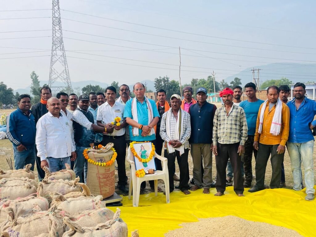 सेंट्रल छत्तीसगढ़ / विनोद उपाध्याय (हरदीबाजार).. धान उपार्जन केंद्र बोईदा में 44 क्विंटल 40 किलो धान का बहिनी कर किया शुभारंभ ग्राम झांझ निवासी कुसुम चंद्रिका उईके द्वारा धान बेचा गया जिसकी फूल माला श्रीफल से स्वागत करते हुए धान के बोहनी की गई इस दौरान कार्यक्रम में विधायक प्रतिनिधि दुष्यंत शर्मा मुख्य अतिथि रहे सर्वप्रथम अतिथियों के द्वारा छत्तीसगढ़ महतारी का पूजा अर्चना किया गया तत्पश्चात श्री शर्मा जी के द्वारा छत्तीसगढ़ शासन के द्वारा चलाया जा रहा अभियान के बारे में जानकारी देते हुए किसानों के हित में चर्चा की गई यह भी कहा गया कि किसानों को किसी प्रकार की परेशानी नहीं होना चाहिए सही समय पर बरदाना मिलनी चाहिए इस दौरान पूर्व जनपद सदस्य कौशल श्रीवास ,खम्मन प्रसाद खैरवार, प्रबंधक तुलाराम यादव सहित सरपंच ,ग्रामवासी उपस्थित रहे।।
