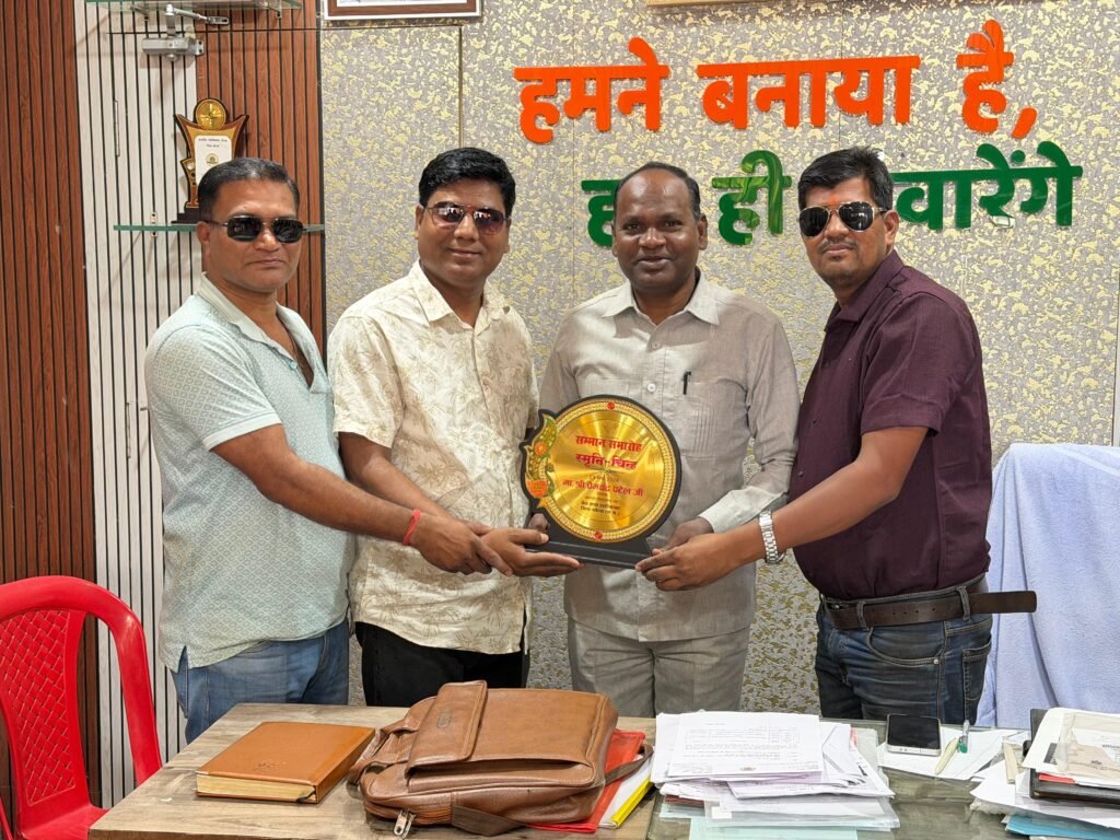 सेंट्रल छत्तीसगढ़(विनोद उपाध्याय)हरदीबाजार...कटघोरा विधायक प्रेमचंद पटेल जी अपने दो वर्ष के कार्यकाल पर कटघोरा में 100 बेड हॉस्पिटल, हाई टेक बस स्टैंड, पितनी नदी पुलिया निर्माण ,जवाली ,झांझ में पुलिया,सड़क निर्माण पूर्ण किया साथ ही अलग अलग क्षेत्रों में सी सी रोड सड़क, नल जल योजना से पानी आपूर्ति,समाज के लिए सामुदायिक भवन सहित अनेक प्रकार से उत्कृष्ठ कार्य करने पर प्रेस क्लब हरदीबाजार के अध्यक्ष राजाराम राठौर, उपाध्यक्ष विनोद उपाध्याय,सचिव निलेंद्र राठौर ने विधायक निवास में स्मृति चिन्ह भेंट कर सम्मानित किया ।।