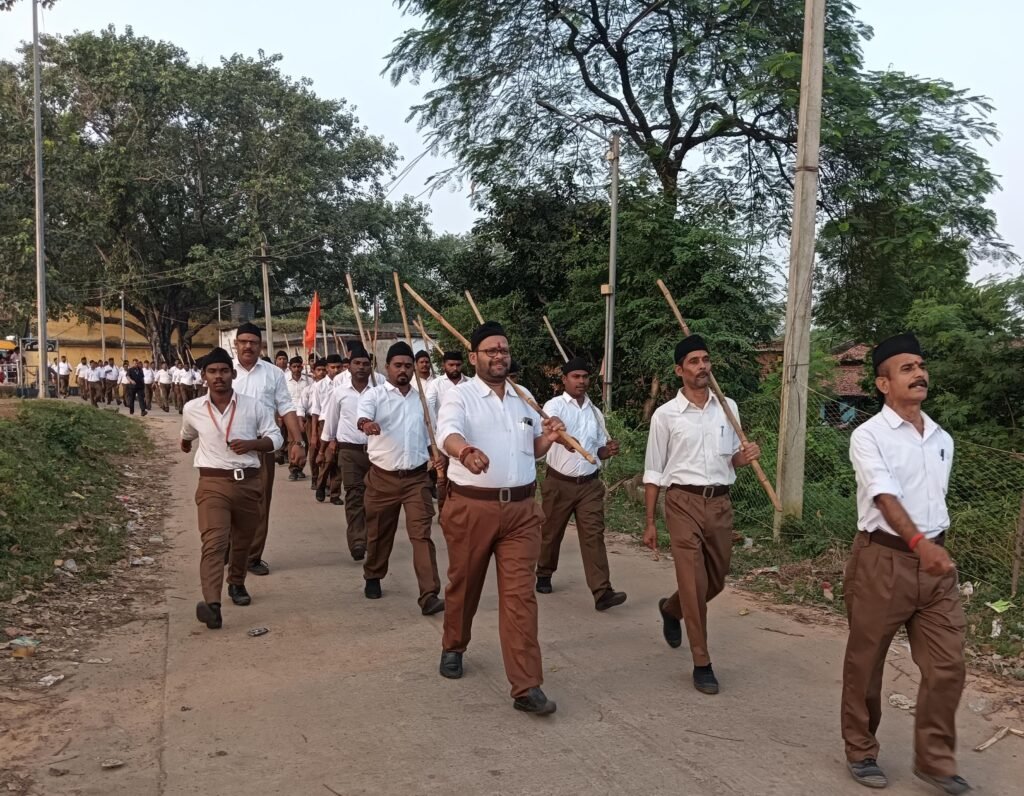 सेंट्रल छत्तीसगढ़ / विनोद उपाध्याय (हरदीबाजार).. जिला कोरबा के पाली ब्लॉक अंतर्गत हरदीबाजार में राष्ट्रीय स्वयंसेवक संघ द्वारा अपनी स्थापना के शताब्दी वर्ष के अंतर्गत 2 अक्टूबर से 15 अक्टूबर तक जिलेभर में विशेष उत्सव एवं जनजागरण अभियान का आयोजन किया गया है ।इसी क्रम में पाली खंड के हरदीबाजार मंडल में विजयादशमी उत्सव एवं पथ संचलन का कार्यक्रम आयोजित किया गया । पथ संचलन की शुरुआत पुरानी आर्यन पब्लिक स्कूल परिसर से किया गया। यह कॉलेज चौक, बस स्टैंड होते हुए नवीन आर्यन पब्लिक स्कूल प्रांगण में संपन्न हुआ। वहां मुख्य वक्ता कैलाश नाहक जी द्वारा स्वयंसेवकों को संबोधित किया गया। कार्यक्रम में मुख्य अतिथि विजय जायसवाल जी रहे। साथ ही खंड कार्यवाह बुद्धि सागर शाही जी भी उपस्थित रहे।जबकि कार्यक्रम की रूपरेखा एवं अतिथियों का परिचय सनातन संघर्ष समिति के जिला संयोजक अजय कुमार दुबे ने कराया। इस अवसर पर मुख्य वक्ता कैलाश नाहक ने बताया कि संघ का शताब्दी वर्ष पांच प्राथमिक कार्य क्षेत्रों पर केंद्रित है