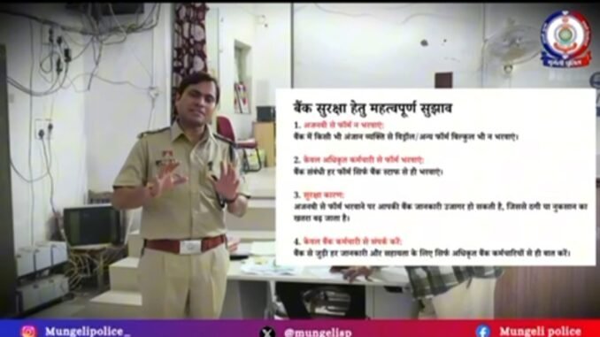 मुंगेली। जिले में बढ़ते बैंकिंग फ्रॉड और धोखाधड़ी की घटनाओं को देखते हुए मुंगेली पुलिस अधीक्षक भोजराम पटेल ने नागरिकों, विशेषकर किसान भाइयों और खाताधारकों से सतर्क रहने की अपील की है। उन्होंने स्पष्ट कहा कि बैंक से जुड़े किसी भी प्रकार के फॉर्म या दस्तावेज भरवाने के लिए अनजान व्यक्तियों की मदद न लें, क्योंकि यह ठगी का कारण बन सकता है।