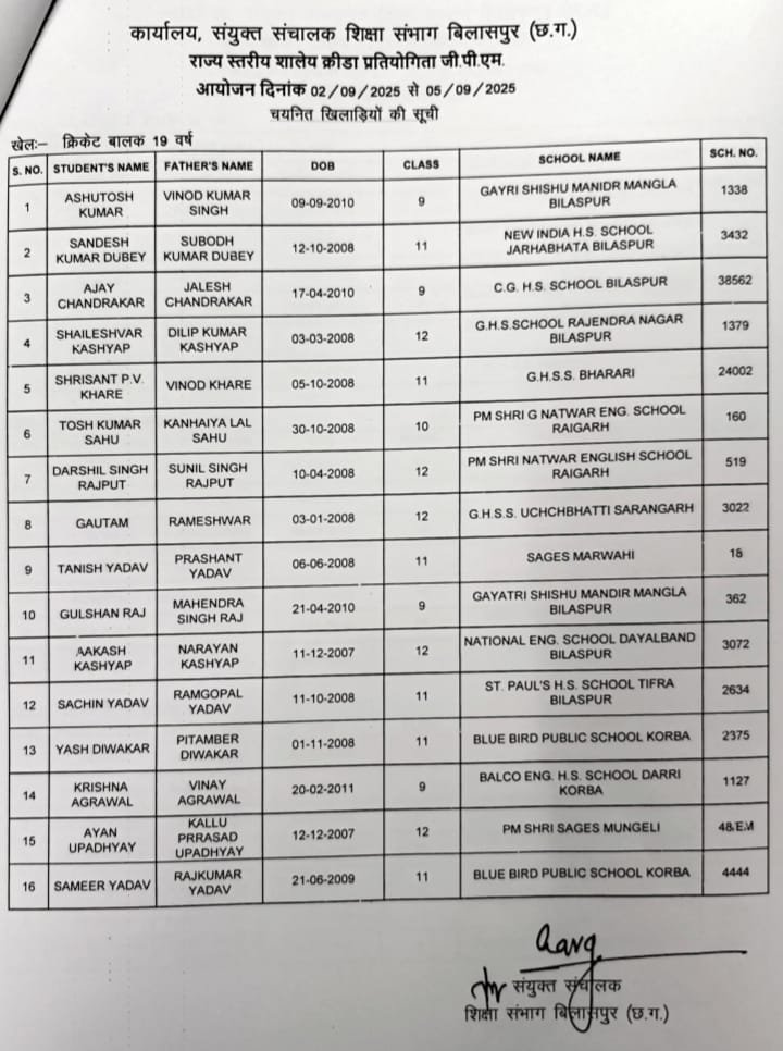 सेंट्रल न्यूज छत्तीसगढ़ कोरबा(अजय राय):–छत्तीसगढ़ राज्य स्कूल खेलकूद प्रतियोगिता के लिए कोरबा जिले से तीन खिलाड़ियों का चयन हुआ है| क्रिकेट प्रतियोगिता में चयनित खिलाड़ियों में कृष्णा अग्रवाल जो कि बीकन स्कूल दर्री में अध्यनरत है, व अंडर 14, अंडर 16 में कोरबा जिले का प्रतिनिधित्व भी करते है।जिले से कृष्णा अग्रवाल के साथ समीर यादव और यश दिवाकर का भी चयन हुआ है ,कोरबा जिले से सभी चयनित बिलासपुर जोन की टीम से अपने खेल का प्रदर्शन करेंगे।कृष्णा अग्रवाल के चयन पर ब्लैक पैंथर क्रिकेट क्लब के कोच बलविंदर सिंह सोढ़ी (रिंकू) ने उनके उज्ज्वल भविष्य की कामना की है। कृष्णा के चयन पर उनके परिजनों और पारिवारिक मित्रों के अलावा सहपाठियों के मध्य हर्ष व्याप्त है।