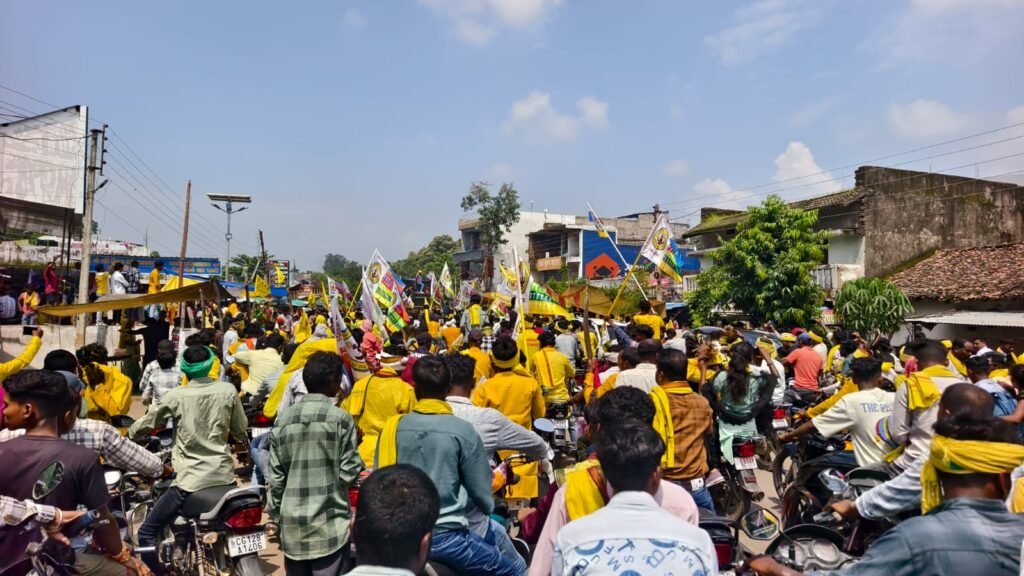 कोरबा( सेन्ट्रल छत्तीसगढ़ ): विश्व आदिवासी दिवस के मौके पर शनिवार को कोरबा जिले के पाली में आदिवासी समाज ने अपनी एकजुटता और ताकत का ऐतिहासिक प्रदर्शन किया। आयोजन स्थल पर सुबह से ही पारंपरिक वेशभूषा और झंडों के साथ समाजजन पहुंचने लगे। देखते ही देखते पाली का मैदान हजारों आदिवासी भाइयों-बहनों से भर गया। अनुमान है कि 10 हजार से अधिक लोग इस कार्यक्रम में शामिल हुए।